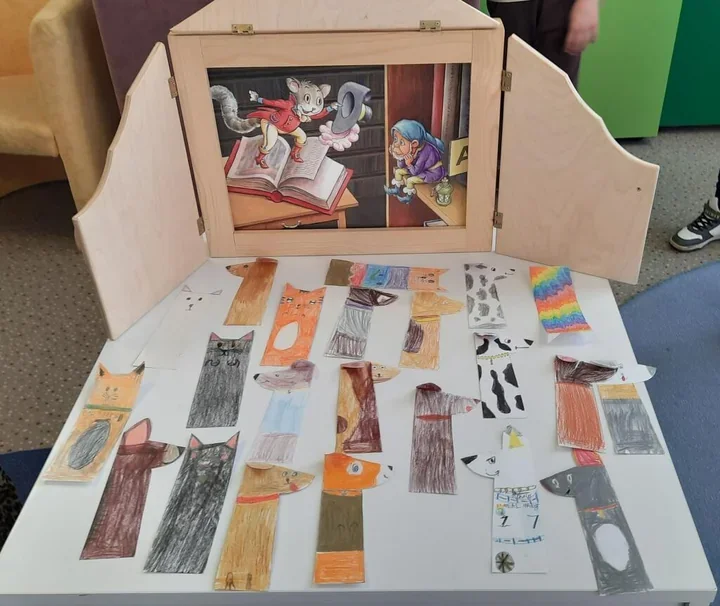 Prowadząca zajęcia - Katarzyna Bednarz-Soja z PBP - zaprezentowała dzieciom różnorodność zbiorów: książki z trójwymiarowymi ilustracjami, ruchomymi okienkami oraz filcową książkę sensoryczną o Czerwonym Kapturku. Uczestnicy odświeżyli też znajomość postaci takich jak Gruffalo, Filemon i Bonifacy, Miś Paddington, Koziołek Matołek, Miś Uszatek i Kubuś Puchatek. Na koniec każdy zabrał ze sobą zakładkę-kotek lub zakładkę-piesek do pokolorowania oraz naklejki - mały gest, który ma często większą moc niż jedno opowiadanie. 🎨🐾