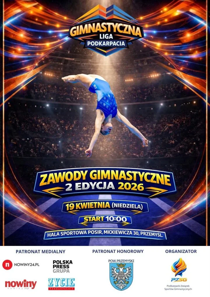 W hali POSiR w Przemyślu pojawią się tego dnia zawodnicy, którzy zamiast głośnych okrzyków wybierają precyzję, siłę i dopracowany do ostatniego ruchu układ. Druga edycja zawodów gimnastycznych z cyklu Liga Podkarpacka 2026 ma przynieść sportowe emocje, ale też szansę zobaczenia na żywo dyscypliny, która na co dzień rzadko trafia na pierwsze strony. Wstęp będzie wolny, więc trybuny mogą wypełnić się nie tylko pasjonatami, lecz także rodzinami i wszystkimi, którzy chcą spędzić niedzielny poranek przy sporcie.