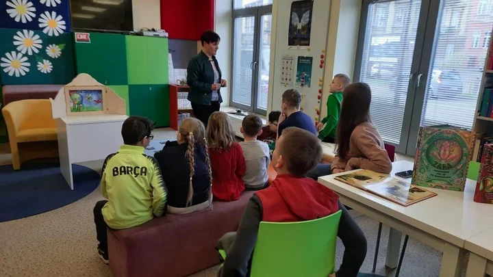 Zajęcia poprowadziła Katarzyna Bednarz-Soja. W Przemyślu takie spotkania pokazują, że biblioteka potrafi być miejscem nie tylko do wypożyczania książek, ale też do oswajania emocji, ćwiczenia uważności i szukania własnego miejsca w opowieści.